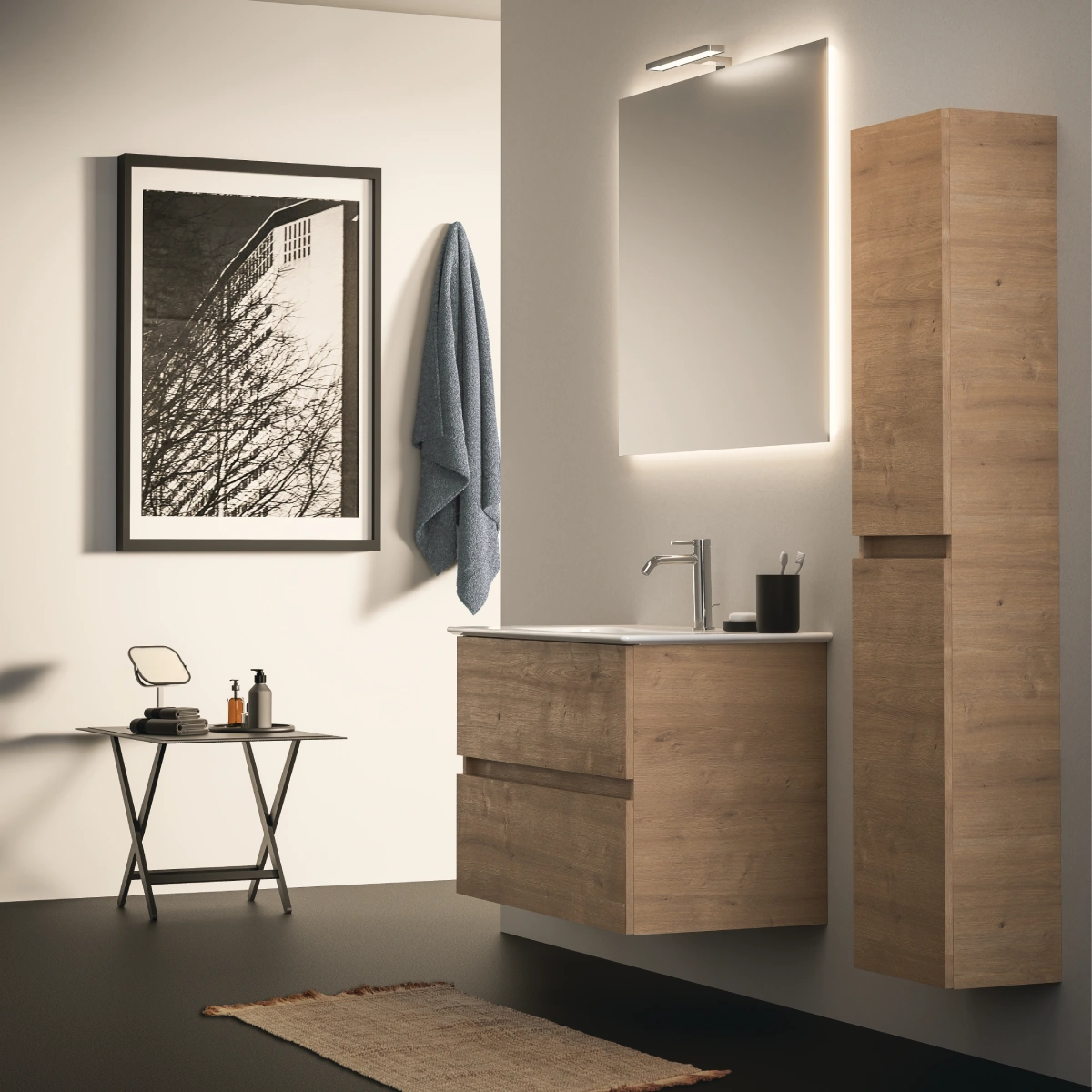 Предлагаме персонализация до детайл (размери по поръчка, богата палитра от цветове и покрития, избор на дръжки и аксесоари) и цялостна баня от едно място – мебели, огледала, мивки, смесители и аксесоари в една хармонична линия.